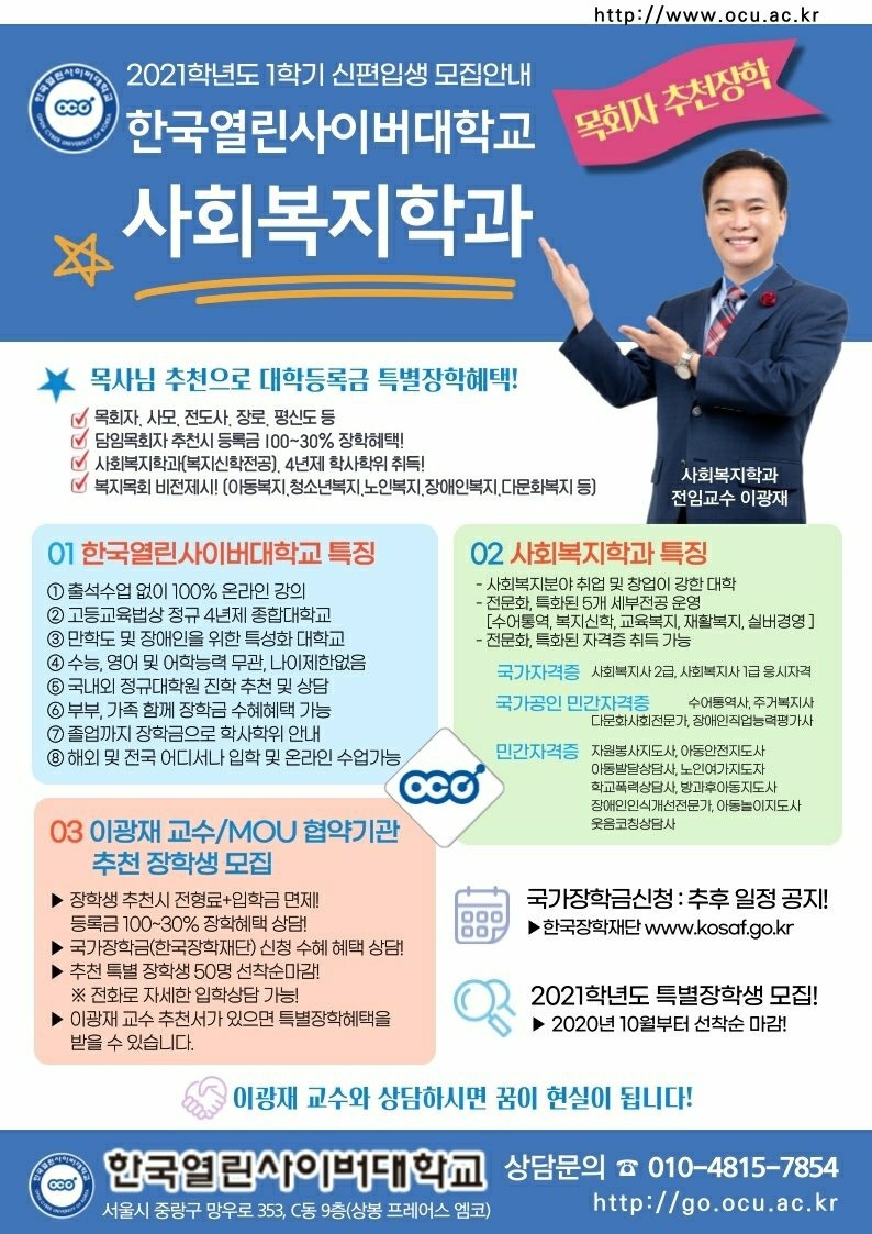 목회자. 선교사. 전도사. 사모. 성도들에게 전액장학혜택으로 대학교에 진학할 수 있는 안내를 해드리겠습니다.