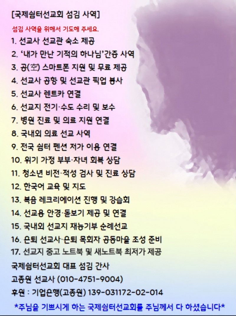 [국제쉼터선교회 사역들 동참하기]