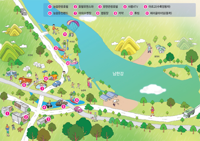 6. 능암온천랜드 7. 야외수영장 8. 캠핑장
